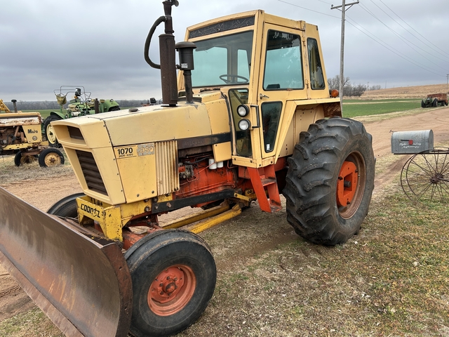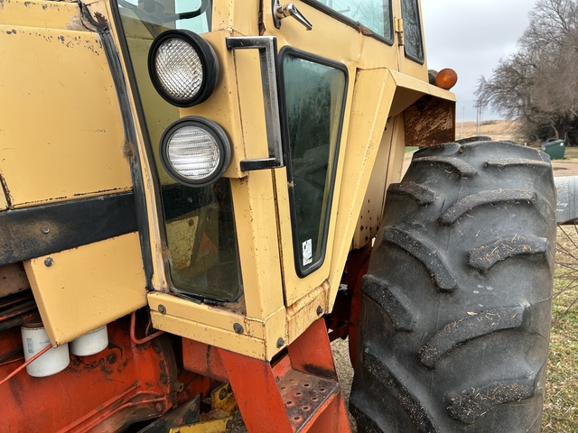 Starts runs and drives good. Diesel, 3 point, has original top link, big wide rear tires, 540/1000 PTO, has all the A/C stuff on it but not working. Dual hydraulics. Has the powershift transmission. Shifts good. Wheel weights inside and out. Dozer blade sells with it. 89xx hours.