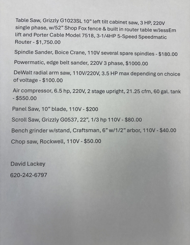 Several pieces of woodworking equipment. Cleaning out a cabinet shop. See listing