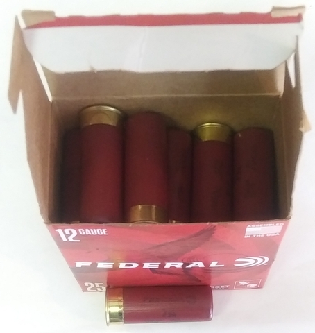 48 plastic shotshells total in 100-shotshell box (1 box of 25 shotshells & 1 box of 23 shotshells in 25-shotshell box). $0.21 / shotshell. Model #: MP12 7.5. Lot No. L209V27-L209V01. 2019 or newer. Shotshells new, but in opened boxes. Boxes good condition. Unknown how ammo has always been stored. All clean.