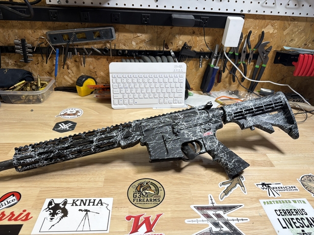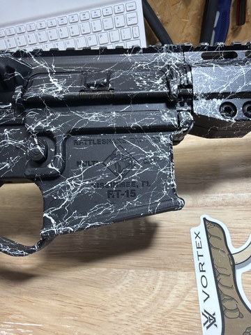 Custom paint job on a lightweight polymer lower AR-15. Great truck gun!