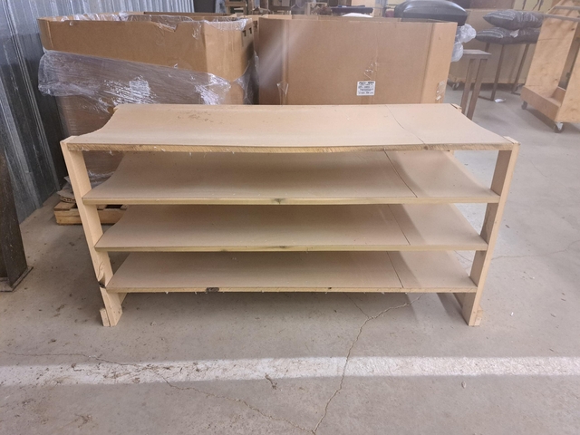 SHELVES ARE CARDBOARD CHIPBOARD.DIMENSIONS:62" LONG X 24" WIDE X 32"TALLCASH AND CARRY ONLY