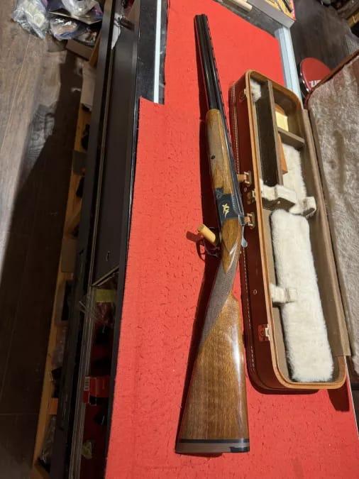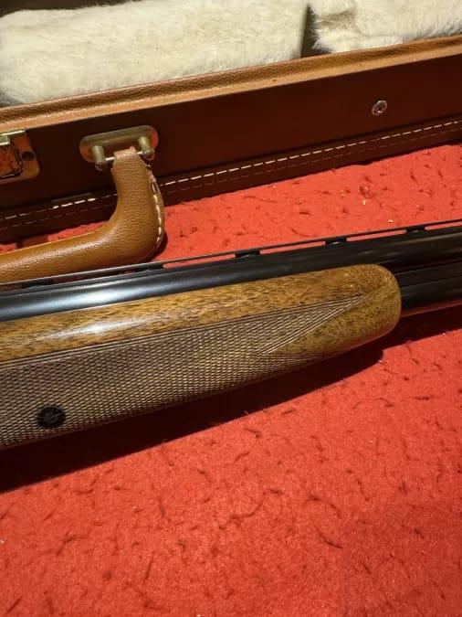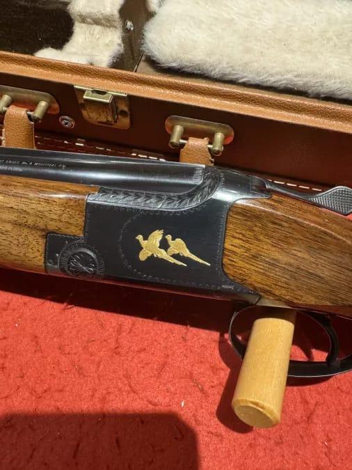 Browning Superposed 20ga , 2 3/4” , 26 1/2” fixed cyl/mod , English stock , lop is 14 1/4” , browning case , pointer grade