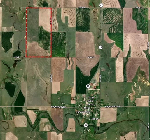 Visit www.eliterealtyks.com for more information. Don't miss this quality Gove County 320+/- acre property going to live & online auction on May 5th, 2026, at 11:00am. The property features 213.76 +/- acres cultivation and 106.75 +/- Acres fenced grassland just a mile north and a mile west of Gove, KS. The Grassland is set up with cross fencing creating 4 separate grazing tracts fed by a well with a submersible pump. Two tanks are placed in central locations to allow water to each rotational grazing tract. Contact Nathan Goetz at 785-673-3246 or Mark Ottley at 785-623-1400 for more information!