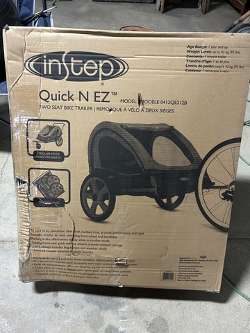 Instep bike trailer. Never assembled. $50 OBRO