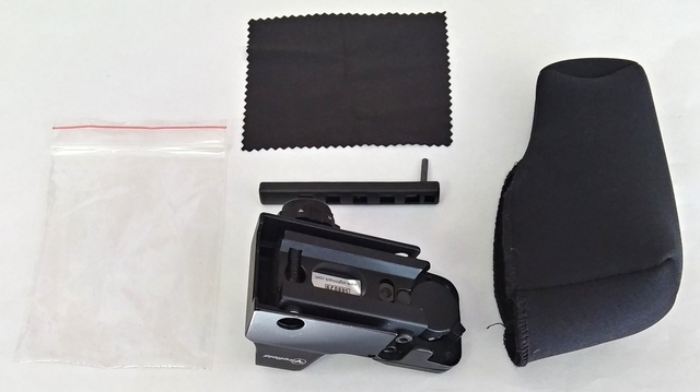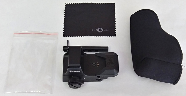 Used sight, w/o User Manual, w/ adjustment tool. Sight itself weight: 0.35 lb. Has Sightmark label on bottom, w/ number 568029. Requires CR1632 battery (not included). Shockproof, IP55 water resistant. Durable cast aluminum. Manufacturer states that it fits standard weaver/picatinny rails. Able to withstand recoil up to .308 caliber. Comes w/ dust cover, Sightmark lens cloth. All clean. Good condition. Other than windage & elevation adjustments, shockproof & water resistant features not tested, all other functions tested good.