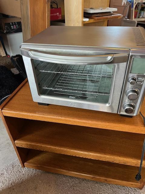 VERY GOOD CONDITION OSTER OVEN , SILVER IN COLOR, COOK MOST EVERYTHING IN IT.
