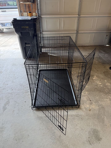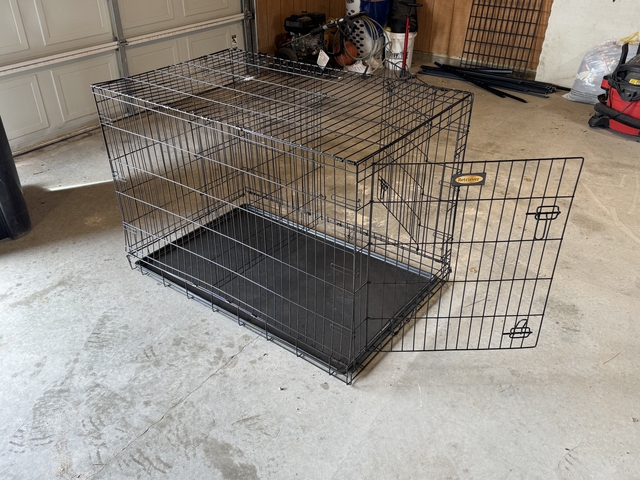 Extra large 48” Retriever dog crate. Includes divider panel and plastic tray.