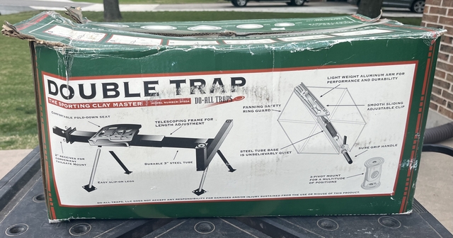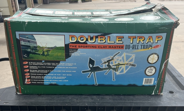 Manual double arm sporting clays thrower. Used once and stored back in original box.
