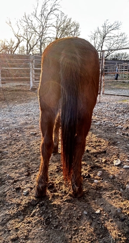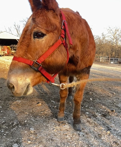 Meet Lester. A 21 y/o blood bay John mule. We bought him as a weanling and broke him for ranch work. Lester has been used for whatever needed done. Also used for coon hunting. Stands for farrier. Gentle for anyone to ride. Loves attention. Very personable.