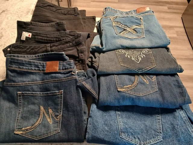 9 pairs of Plus size jeans size 24 all different brands in good condition.You pick up Firm on price for all.
