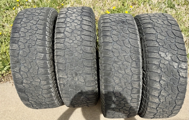 For sale: set of 4 Falken Wildpeak A/T3W tires – size 265/75R16 (SL, 116T). These were previously on my Tacoma and have performed great as an all-terrain set with no issues. No punctures or repairs. A tire shop advised there is still a few thousand miles of tread life remaining if driven lightly.