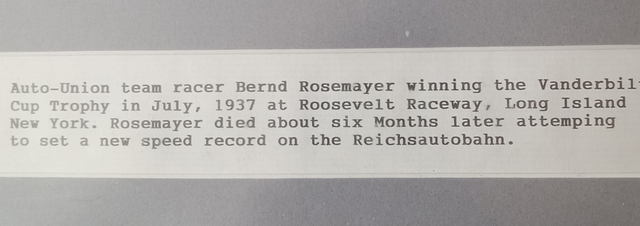 1937 Vanderbuilt Cup Trophy, Long Island, New York winner Bernd Rosemayer.