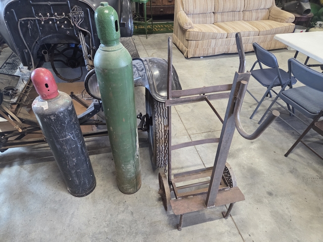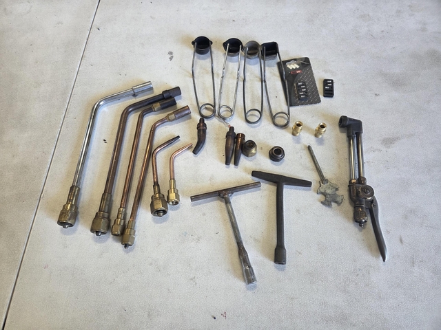 Oxygen and acetylene bottles. Cart. And miscellaneous torch tips and accessories. $400. Obo. Message Eric at six two zero 282-1844. Thanks