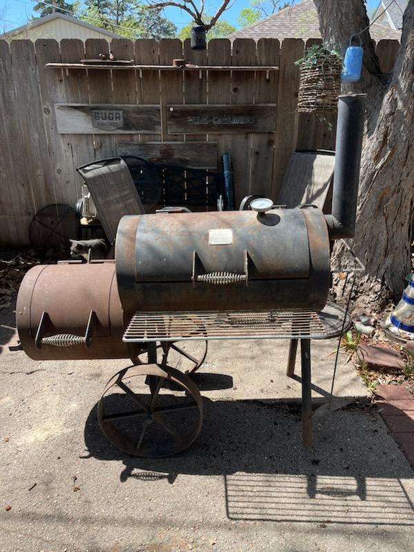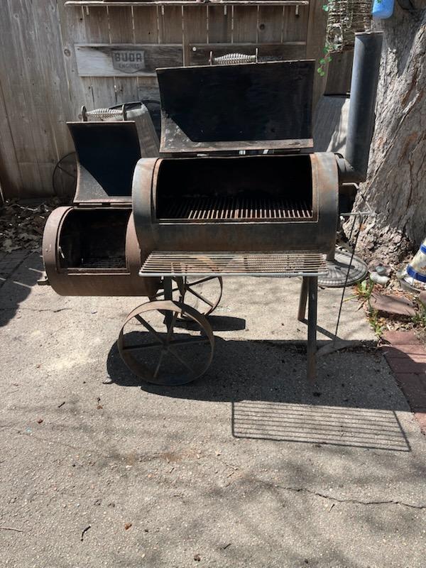 Heavy duty Brinkmann BBQ/Smoker. Has rust no holes. I think it's 1/4" steel construction, heavy 8" steel wheels. Good shape just don't use anymore. Call or text 620-793-0366
