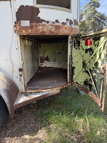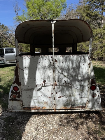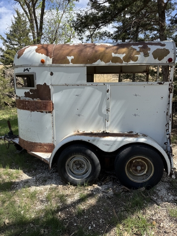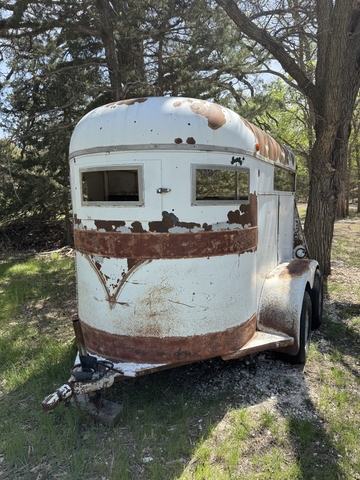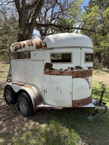2 Horse Bumper Pull Trailer. Fixer Upper. Would be great for a bar or a boutique. We used it for a Prop at an Outdoor Wedding. Rubber floor is good. No Trades. Cash Only! Pickup Only. No Delivery! I do have the Title.