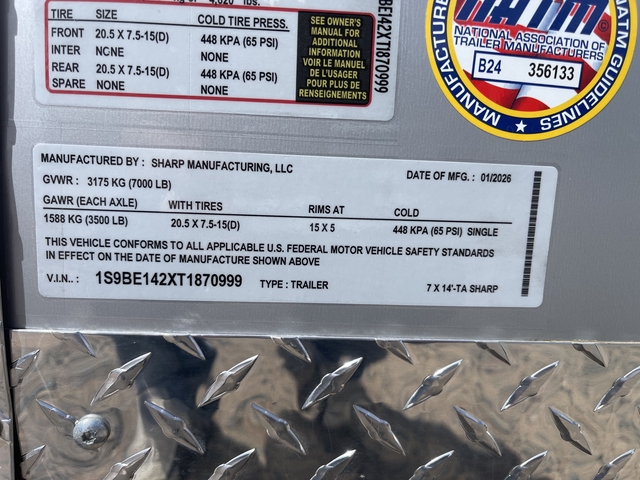 2026 Sharp 14' Tandem Axle V-Nose Cargo Trailer