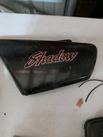 1984 Honda Shadow parts: Gas tank cleaned, sanded and primed, new cap. $150.00. Seat in fair condition. $50.00. Left side cover $100.00. Tach and speedometer, $100.00. Headlight, $50.00. Front Fender, $50.00. Other miscellanous parts. Call for more Info. 719-343-5366.