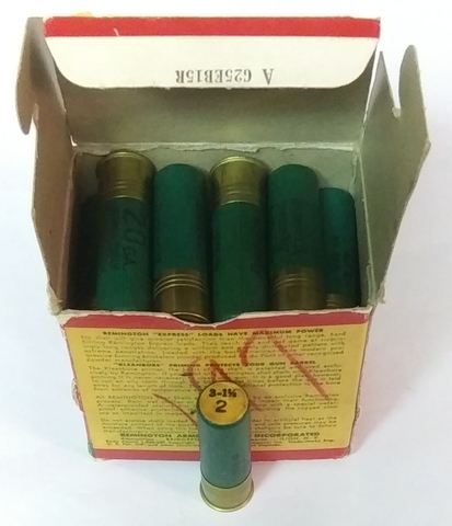 25 plastic shotshells. Model #: RX20S-MAG. Lot No. A G25EB15R. $0.52 / shotshell. Shotshells new, but in opened box. Box fair condition. Unknown how ammo has always been stored, or how old it is. Sold as collectible ammunition. Clean.