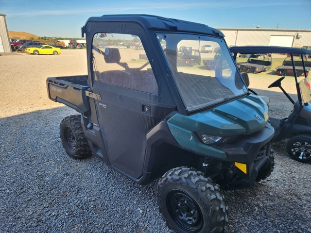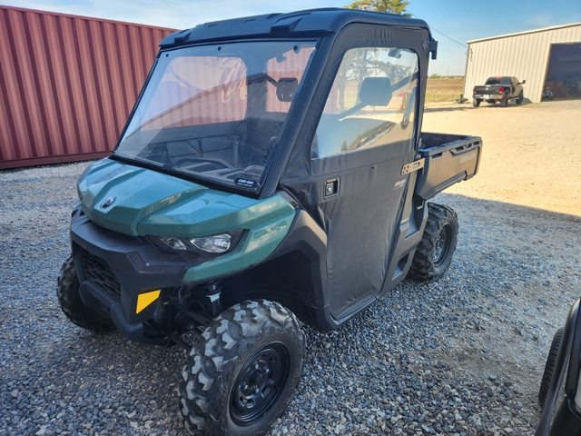 We have for sale this used 2025 Defender HD 7 base unit. Has the 650cc 52hp Rotax engine, CVT belt drive. Selectable 2wd/4wd, 27 inch tires on 14 inch steel wheels, versa pro bench seat. 10.6 gallon fuel capacity. This unit has 48 miles and 11 hours on it. Excellent condition. Added accessories include full roof, front windshield, rear window and soft doors. Come in and check it out or call 620-225-0064