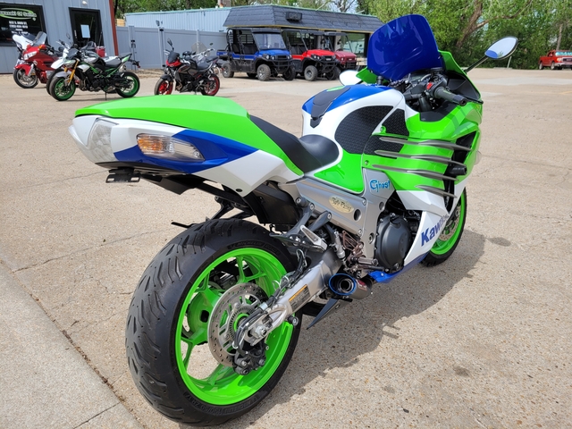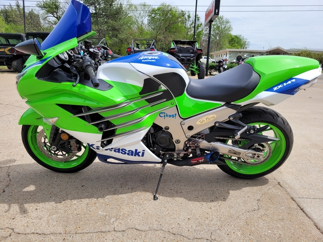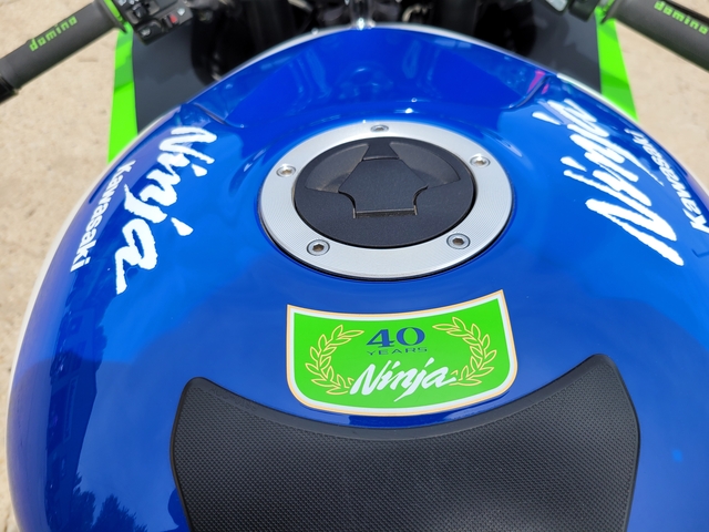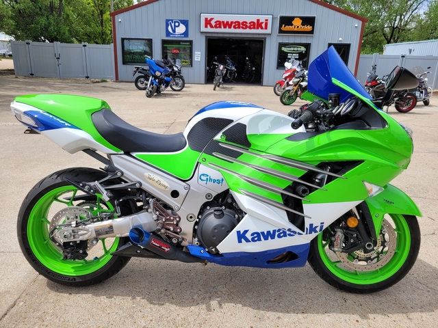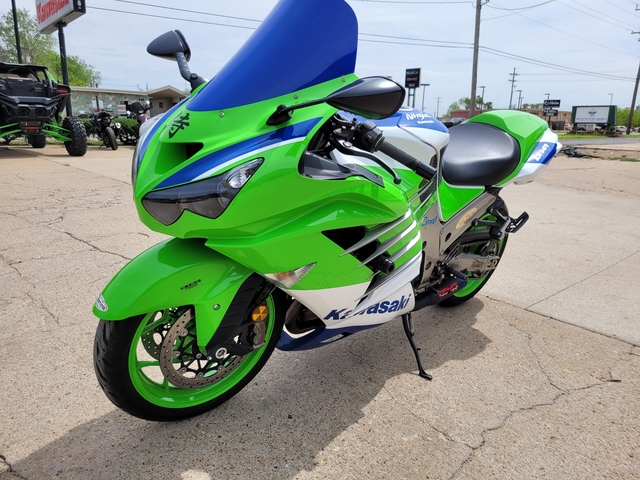 Used 2024 40th Anniversary Ninja ZX14-R 40th Anniversary with 3669 miles! Exhaust, steering stabilizer, grips, and bubble windshield - $13900 See more at www.kawasakiofsalina.com
