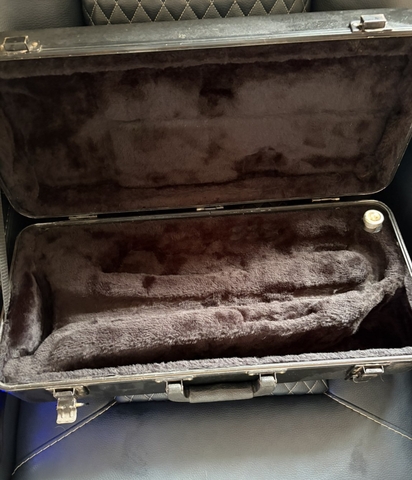 Solid Bach student trumpet in good playing condition. Valves are smooth, slides move well, and it’s ready to go. Includes original hard case.