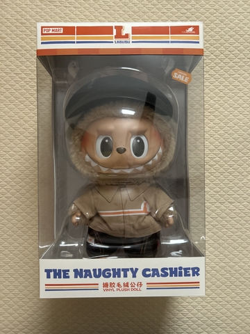 Brand new, never opened Pop Mart Labubu Naughty Cashier Vinyl Plush Doll. This one cannot be bought from Pop Mart, it is only obtainable as a rewards item.