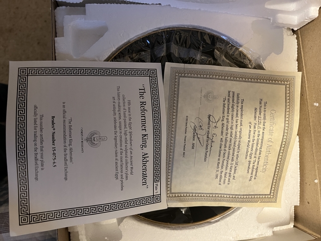 I have a full set of mint in the box collection of egeypt splendors of ancient world collector plates. Six plates showcasing Egypt figurienes with 22 k gold accents. $200.00 OBO. 785-821-2279