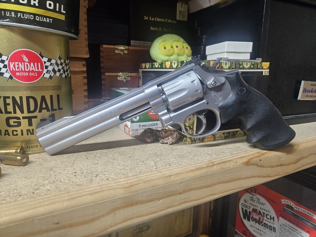 This is a stainless steel 10 shot DA/SA 22lr revolver. No lock, full underlug, adjustable sights. In a K Frame. Comes with original box and wax paper.