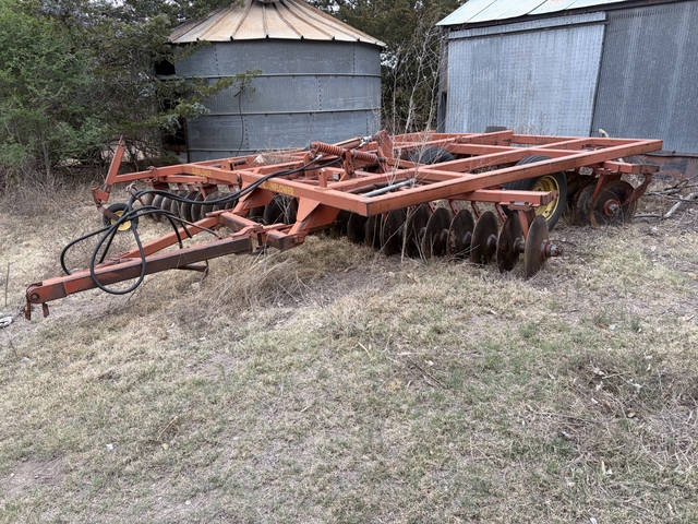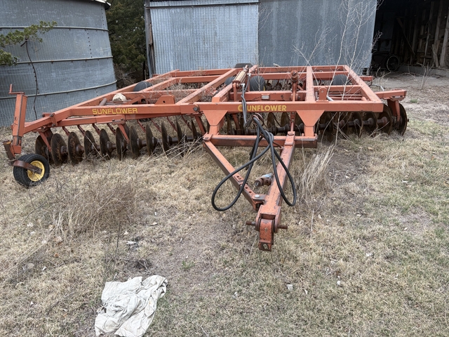 1980s Sunflower Disc 16 foot. We used it 2 years ago to disc 300 acres. Tires are average & it could go to the field now.