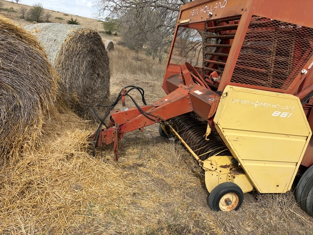 New holland 851 Chsin baler. Needs pickup tines, floor chains, tires average, hydraulic manual twine wrap, and last used 4-5 years ago. 540 PTO. Open to offers.