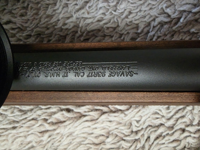 Savage 93r17 bull barrel wood stock. Bought and has sat in the safe since. I believe I shot one round down the barrel the day I purchased it. Bought a different 17hmr shortly after and have no use for this one. Cleaning out the safe