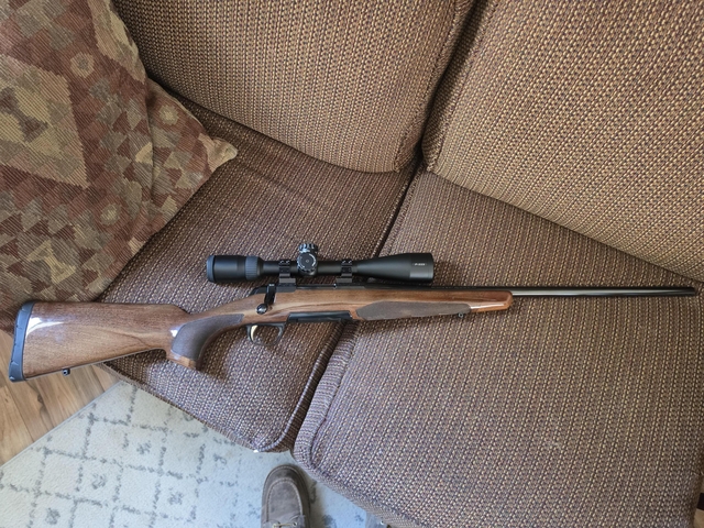 Nice rifle. Been a safe queen. Cleaning out rifles I'm not using. Has a p223 Nikon scope on it.
