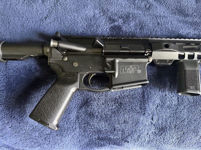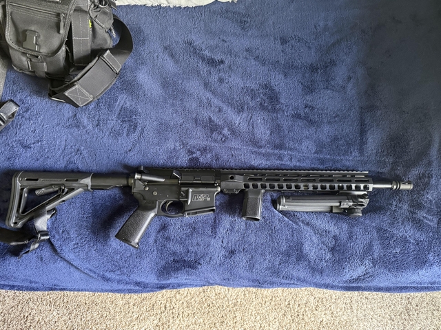 This is a well cared for M&P15 chambered in 556. It has a new PSA M-lok upper and comes with a foregrip, bipod, and 30 round Magpul P-mags. A new set of Magpul back-up/flip-up sights (not pictured) is also included. The Magpul MOE stock and grip are also new and, of course, included. Will provide buyer with a signed bill of sale.