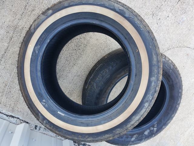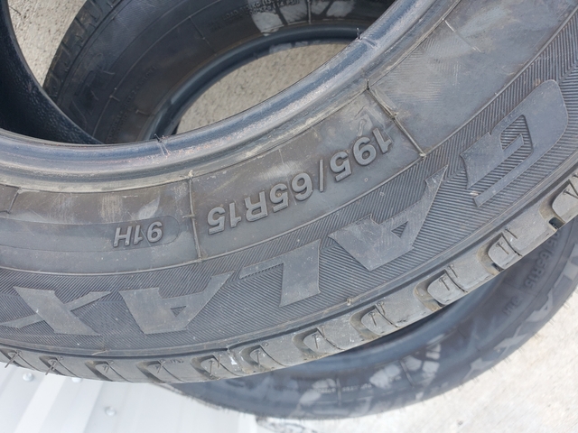 195/65/R15 size white wall one side and black wall other.