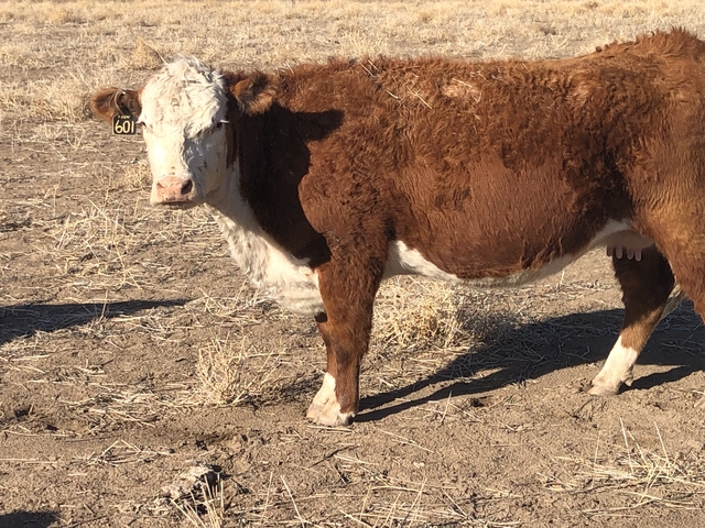We have a commercial purebred polled fall yearling Hereford bull for sale. He has been semen and trich tested and is ready to go. I would not recommend him for use on heifers, but birthweights won't be out of line. He is from an older, very productive cow with an excellent udder. Will make some great baldies and be a very profitable bull.