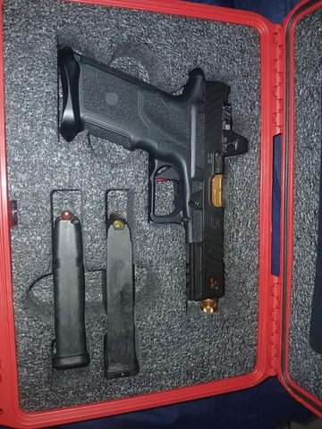 COMPATIBLE WITH GEN 3/4 GLOCK PARTS, THREADED MATCH BARREL, 17+1, SHOOTS AMAZING, HAS DIFFERENT SPRINGS FOR 2LB, 3LB, 5LB TRIGGER PULL, FIBER OPTIC NIGHT SIGHTS, COMES WITH MULTIPLE COLOR FRONT SIGHT OPTIONS, 2- 17 ROUND MAGS, TRIJCON RM-01 OPTIC, PRO MAGWELL, ZEV PRO TRIGGER, MODULAR CHASIS DESIGN ALLOWS GRIP SIZE TO BE SWITCHED FROM FULL SIZE TO COMPACT. WILL CONSIDER TRADES FOR GLOCKS + CASH POSSIBLY OTHER HANDGUNS + CASH.