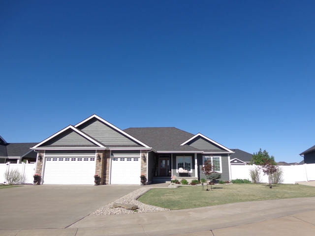 Gorgeous custom built one owner home. Generous open floor plan with superior amenities. Jaw dropping kitchen with cherry wood millwork, gas range, RO System, walk-in pantry, engineered hardwood flooring and some carpet. Features granite countertops. The living room with look stunning at Christmas with a 12’ tree and gas log fireplace. The master bathroom has a fantastic walk-in shower plus jetted tub. Six bedrooms, 3 bathrooms, plenty of storage throughout the home. Lovely wet bar with microwave and mini fridge. Safe room in the basement under the front porch. The backyard features a utility shed, privacy fence, and patios. Call Patty Stull to own this beautiful home located in a cul-de-sac at 785-623-1723.