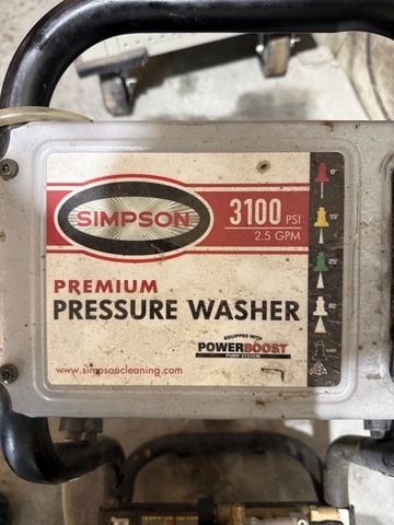 For sales Simpson 3100 PSI gas pressure washer. New hose and wand and all new nozzles. Has Honda engine, uses no oil and has fresh service. Starts everytime. Reason selling is went electric since I don't use it very often.
