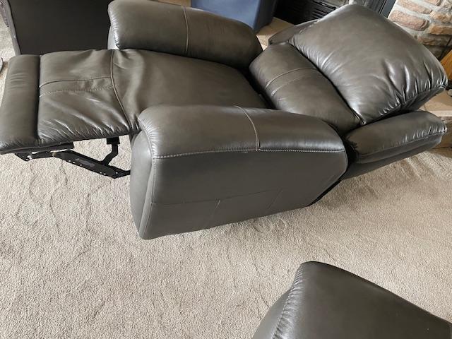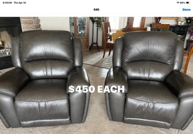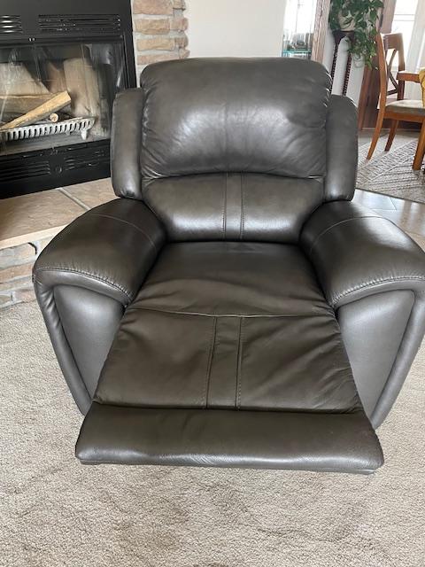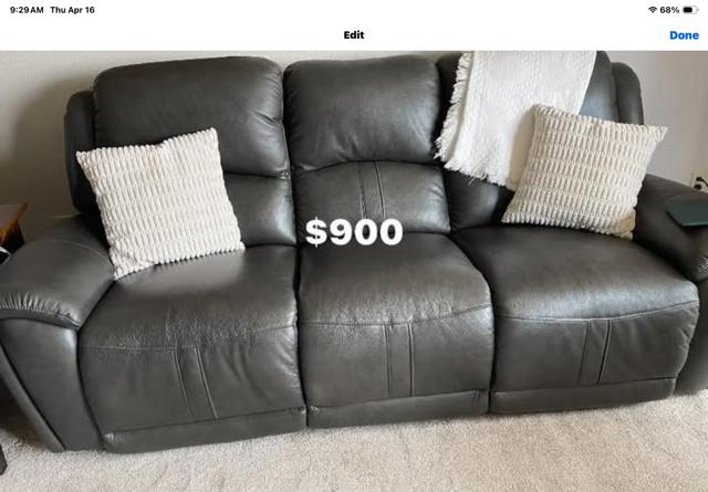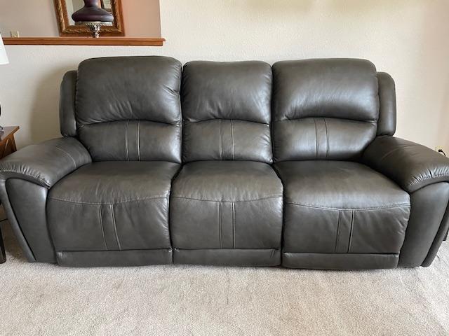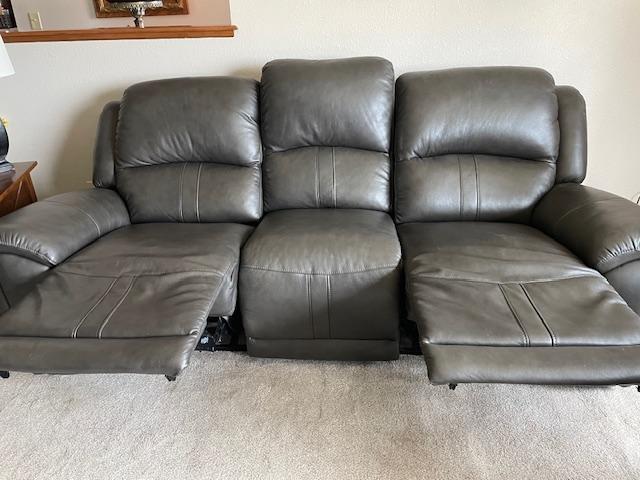 Charcoal/gray leather couch and two matching recliners from a pet free non smoking home...have working power reclining and power headrest. Working USB ports on all. In excellent condition.