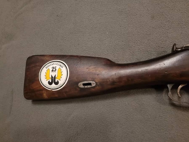 It has a Finnish civil guard markings but no "SA" Army markings. This means that the rifle was never absorbed into the Finnish army, and made its way out of the civil guard and onto the Finnish civilian market. It has Finnish commercial "7.62x53R" proofs, as well as stickers from Finnish shooting competitions, one of them with a 1986 date. It is an interesting Mosin, manufactured in the US, making its way from Russia to Finland, and having a long history with Finnish civilian shooters.