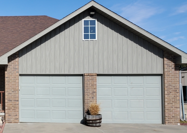 Two used garage doors available. Raynor brand, 9' wide x 7' tall x 2" thick, steel, uninsulated. Doors and track included, openers are not. Was originally white but were painted an off greenish gray color many years ago. Currently installed but have two new ones on order. These will be available after new doors are installed. $100 each.