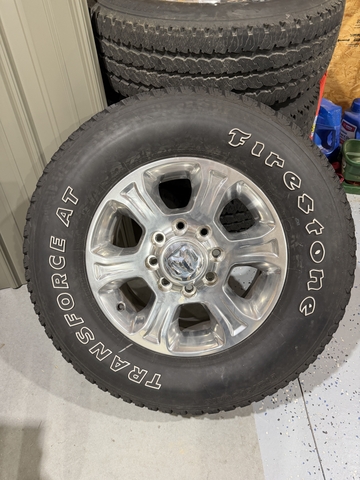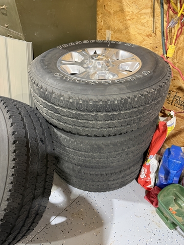 Factory 18-inch wheels and tires. A little dirty but shine up well. Tires have 12k miles on them. One tire has small cut at the sidewall tread interface. Lots of tire left if you're willing to patch this location. Factory tpms sensors included.