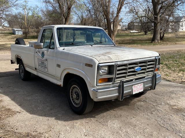 1986 Ford F-150 pickup it has a 6 cylinder gasoline engine that was rebuilt and still runs ok but does need a new exhaust manifold. The truck does have rust on it. Has an automatic transmission and is 2wd. It will probably need new tires before too long. When the engine was rebuilt they did not reinstall the AC . The front fuel tank is good but the rear tank leaks so I never used it.