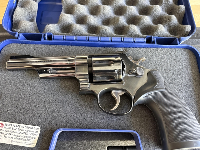 Classic S&W N-frame revolver in excellent condition. Serial N216333 dates this example to 1975, featuring the desirable pre-lock configuration with pinned barrel and recessed cylinder — features S&W discontinued in the early 1980s.