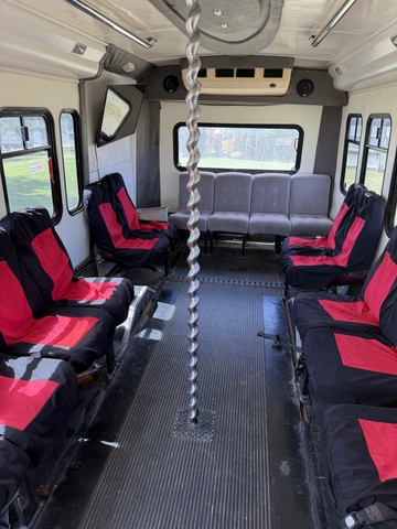 Selling as is, 16 passenger bus with perimeter seating and a mounted TV.