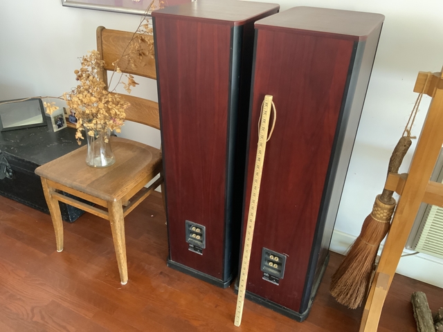 a pair of PSB floor speakers, maybe 20 years old but great speakers.