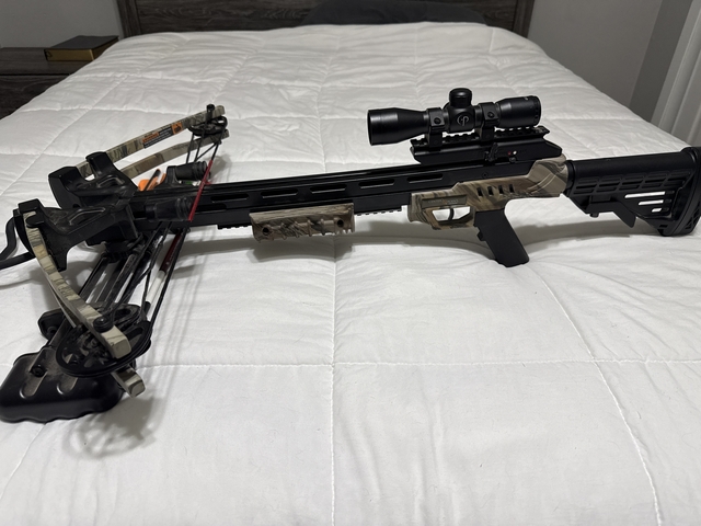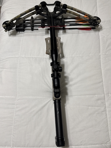 Centerpoint sniper 370 crossbow with 4x32 crossbow scope. Adjustable buttstock only used handful of times. No use for it just sitting around. Comes with four bolts.
