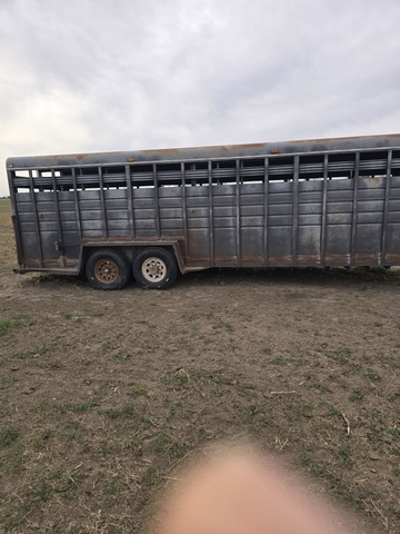 24 ft, 2 gates with slides, 1 needs attention. 3 out of 4 tires are new 14 ply and the fourth one is short tread. Lights all work. Trailer has had some rust repairs done before we purchased it but is holding up well. Composite forever floor.