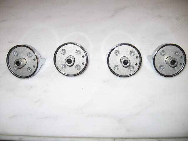 Set of four (4) original GE Profile gas cooktop control knobs, removed from a working GE Profile gas cooktop manufactured in the 1990s–2000s era.