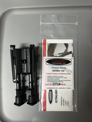 I have a very lightly used Harris Bi-pod. 6-9" adjustable non swivel! Attaches to sling swivel stud! Email or text 785-222-6240.